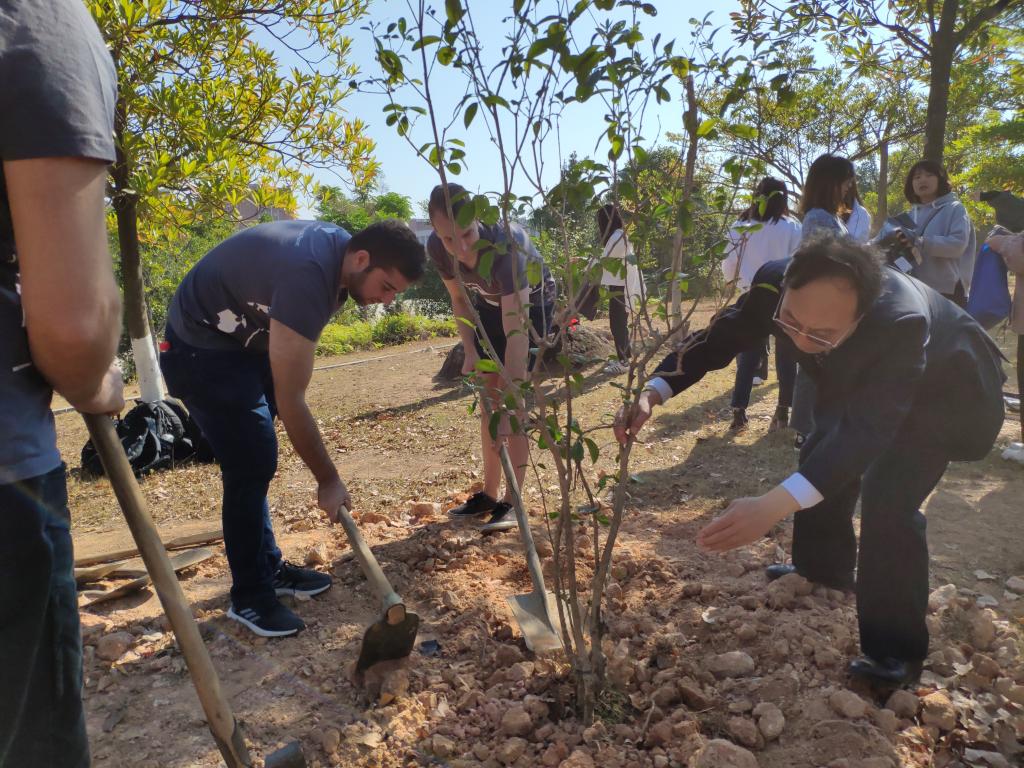 2019年12月12日, EachFuture机构广州办公室一行五人以及美方机构Greenheart代表一行六人来访我校,并进行了公益植树活动。我校副校长钟森文教授、国际交流与合作处处长王文忠等热情接待了来访的代表。