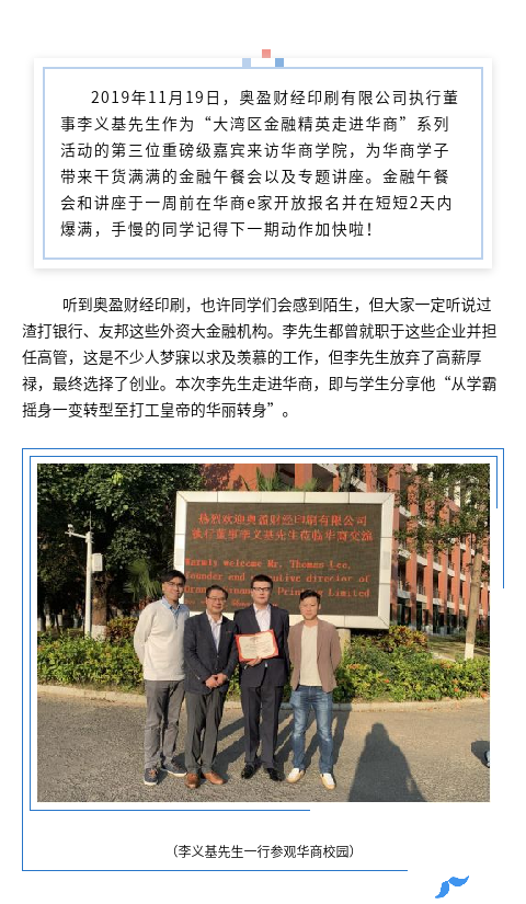 大湾区金融精英走进华商系列活动(三) ——计划和行动力往往比你想象中更重要