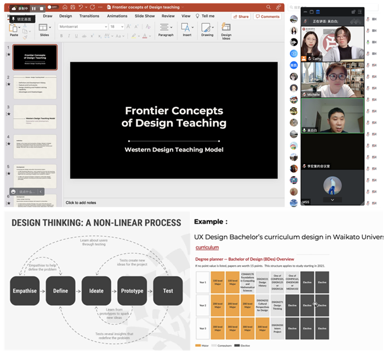 Michelle Shang女士以西方设计模式作为切入点,再以中外设计课程授课模式的教学特点和教学理念作对比阐述两者的各自优劣势。Michelle认为西方设计学教学侧重点是培养设计思维与解决问题的能力,从而提升学生综合素质。她建议教师们除讲授知识外,应多与学生作双向交流,引导并鼓励学生产生积极能动性。