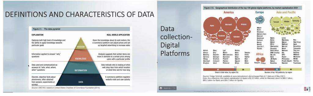 王蓓教授以数字经济的概念作为切入点,再以数据的使用与发展、处理与应用深入讲解数据跨境流动通过数据收集-存储-分析-传输的过程,拓展出数字经济如何突破困境给社会带来福祉。王蓓教授认为未来关注的关键领域分别是数据价值、信息与通信技术、其他行业的数字化转型及数字政务,最后王蓓教授向教师们分享相关的数据追踪资源。