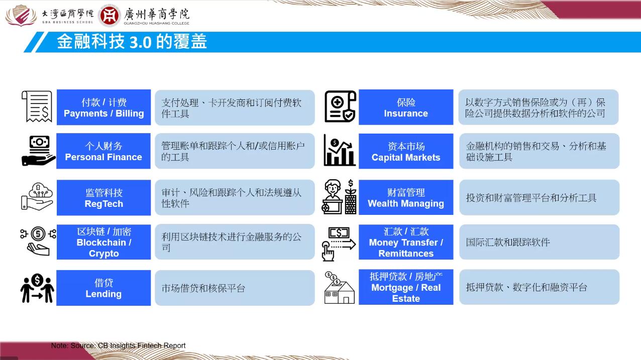 此次讲座的主讲人是HKbitEX联合创始人与首席策略官卢廷匡先生,主题是新兴科技于初创之实践。卢廷匡先生讲解了科技创新、金融科技的范畴,包括虚拟银行、区块链等新兴科技。卢先生着重讲解了区块链的关键属性、区块链在供应链中的应用等,并以多家知名虚拟银行为例分析了虚拟银行如何展开合作模式。