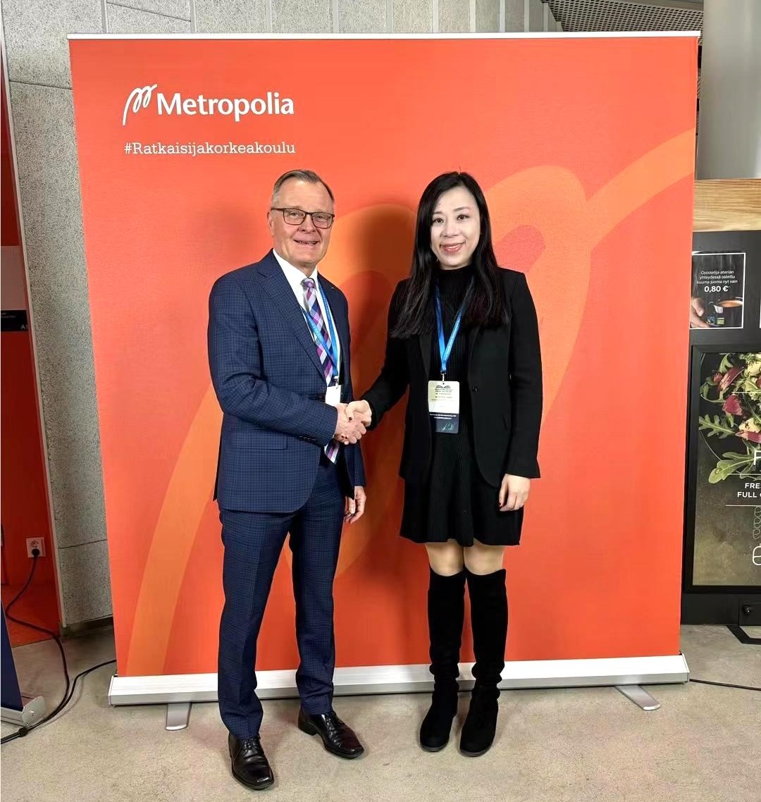 (我校副校长廖伊曼博士与芬兰应用科学大学校长联盟主席Riitta Konkola博士合影)