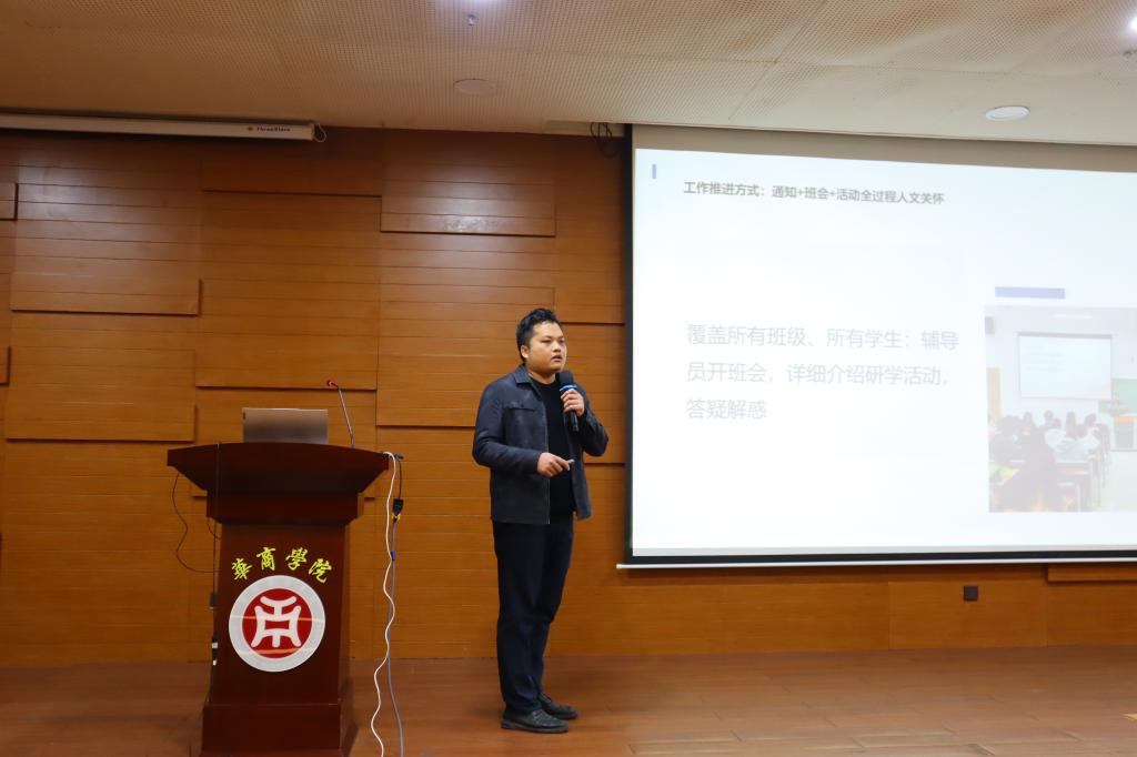 在表彰大会正式开始前,王文忠主任汇报了2023-2024学年“发现香港之美”研学活动的开展情况。他汇报,在过去的一学年里,“发现香港之美”研学活动得到了各单位及教师的大力支持,共出团了38 批次、3175名学生、53 名带队教师赴港研学。他简要介绍了学校在研学活动期间的准备工作,并对上一学年各学院的出团情况做了精炼的小结,展示了各学院的研学成果。