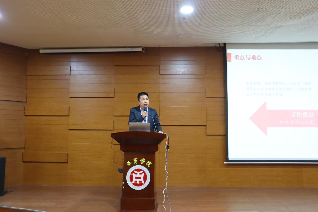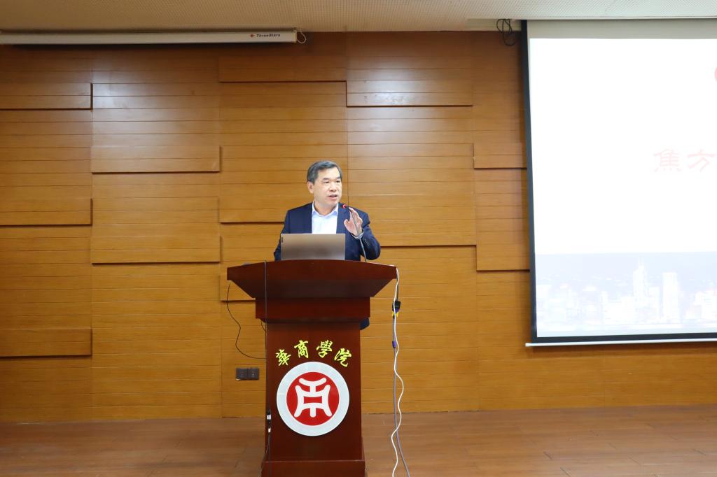 焦方太副校长在表彰大会上发表讲话。焦副校长代表学校向参与此项工作的每一位教职工表示亲切慰问与衷心感谢,也向在此次研学活动中表现突出的先进单位和个人表示祝贺。他指出,在国家大力推动粤港澳大湾区建设的时代背景下,学校积极响应习近平总书记关于促进粤港澳青年交流融合的重要指示,依托高校共青团 “第二课堂成绩单制度”,将其深度融入人才培养体系,培养学生广阔视野与综合能力,厚植爱国主义情怀,助力粤港澳大湾区协同发展,全力打造第二课堂精品项目,突出华商办学特色,为社会培养更多优秀的应用型人才。