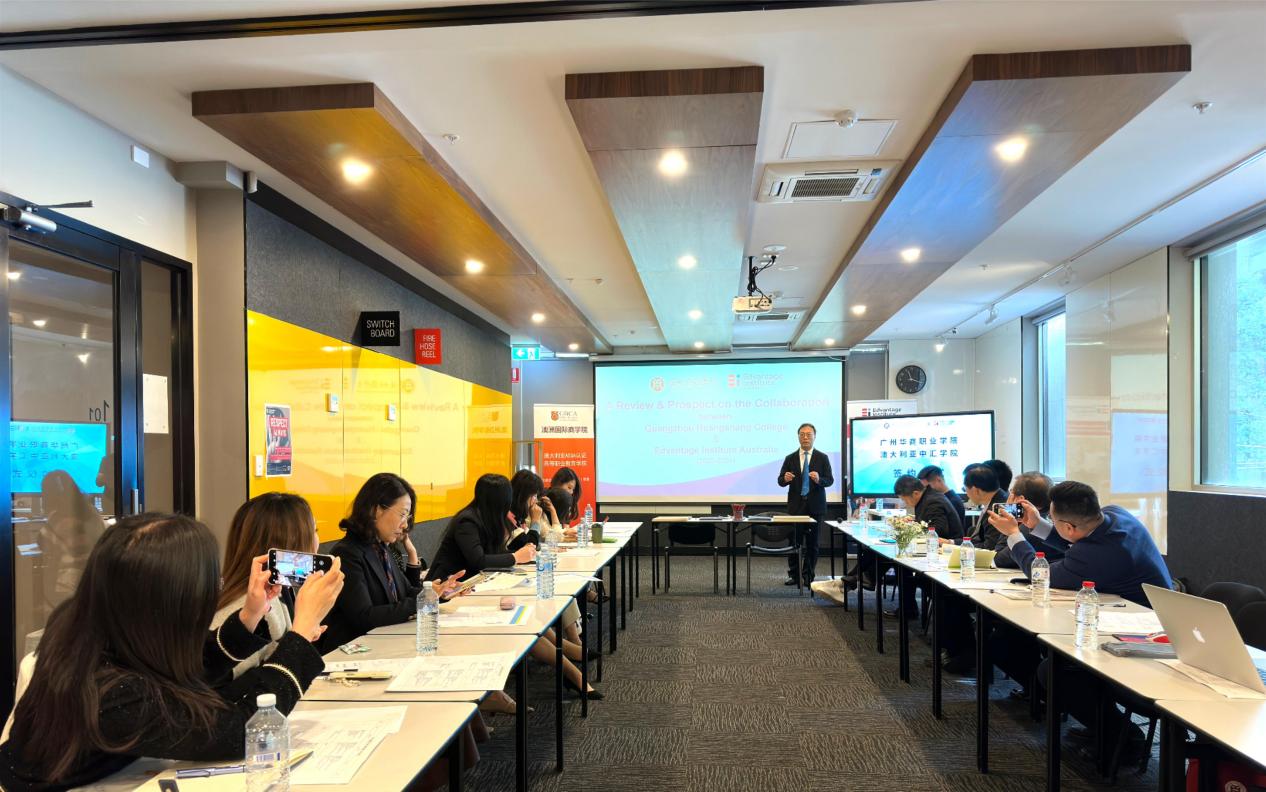 2月16日,我校与澳大利亚国际商学院、澳大利亚中汇学院联合举办国际项目合作签约暨williamhill英国官网海外学习中心(澳大利亚中汇学院)GZHS Overseas Learning Center (EIA)挂牌仪式。双方回顾了自2021年跨境教育合作的丰硕成果,围绕课程共建、师资互聘、学生联合培养等议题达成深度共识。会上,我校与澳大利亚中汇学院正式签署合作谅解备忘录,未来将整合双方优质教学资源,打造跨境学分互认、实习就业一体化的创新培养模式。