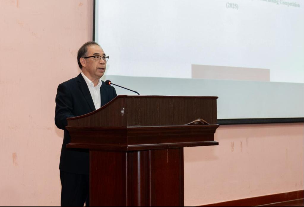 郭银华顾问作开幕致辞,他表示本届大赛以“新兴品牌+生成式AI营销方案”为主题,融合前沿科技与创意空间,要求参赛者贯通营销理论与AI技术应用。他高度肯定同学们的精心准备,期待其展现创新与协作能力。郭顾问强调华商学院致力于培养创新人才,通过优质教育、学术活动及实战竞赛,全面提升学生国际视野、实践能力与科技应用水平。他鼓励同学们大胆展示AI赋能的营销方案,并预祝大赛圆满成功。