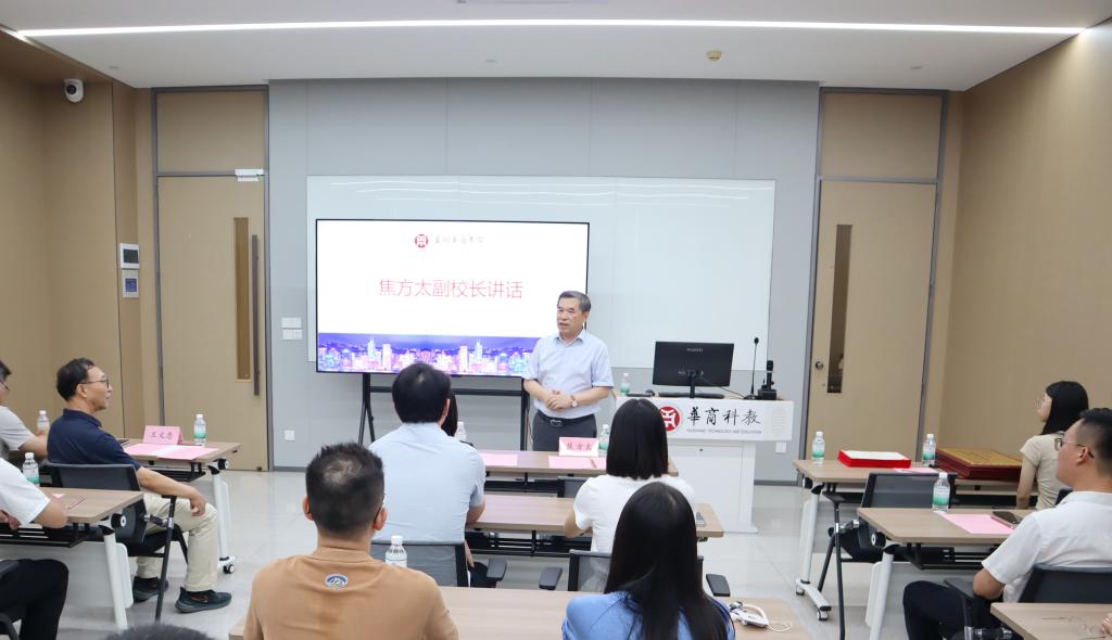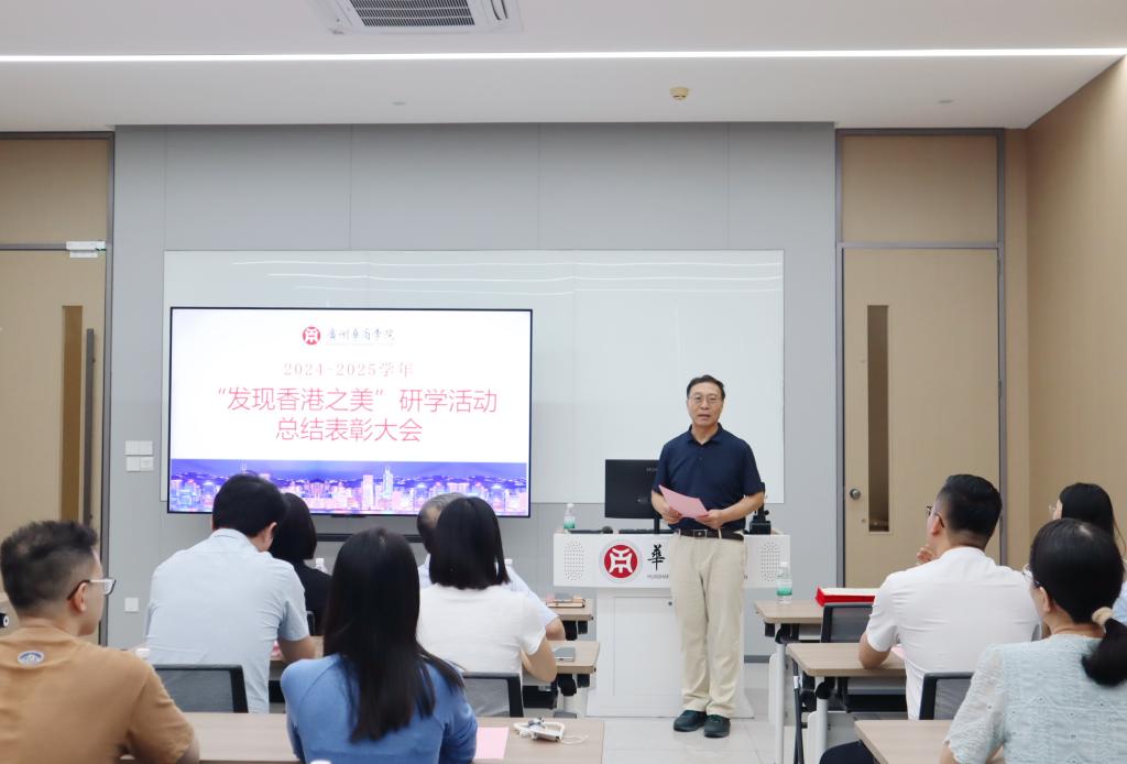 焦方太副校长讲话。焦副校长代表学校向参与此项工作的每一位教职工表示亲切慰问与衷心感谢,也向在此次研学活动中表现突出的先进单位和个人表示祝贺。他指出,“发现香港之美”研学活动充分利用华商科教集团在香港的优质资源与优势,是学校落实立德树人根本任务、拓展实践育人路径的重要举措,也是学校为大湾区融通、融合、融汇所做的华商贡献。各学院要继续鼓励学生积极参与研学活动,培养学生国际视野与综合能力,厚植爱国主义情怀,助力粤港澳大湾区协同发展,全力打造第二课堂精品研学项目,突出华商香港特色。