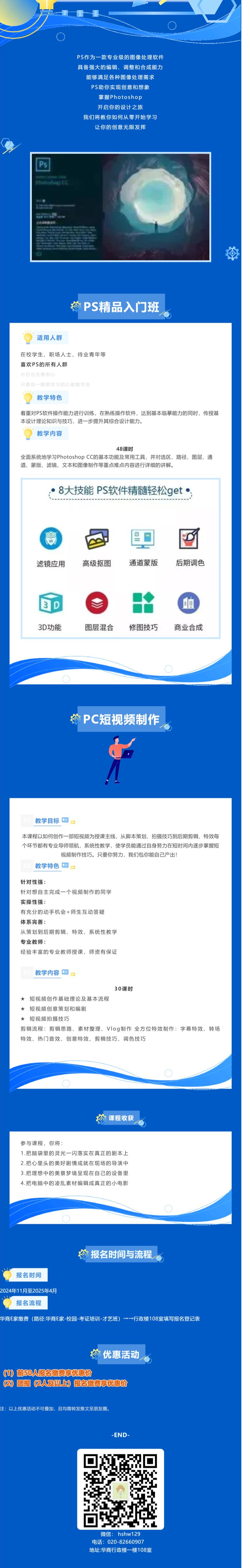 华商校内培训 | PS入门精品班、PC短视频制作(2025年春季)