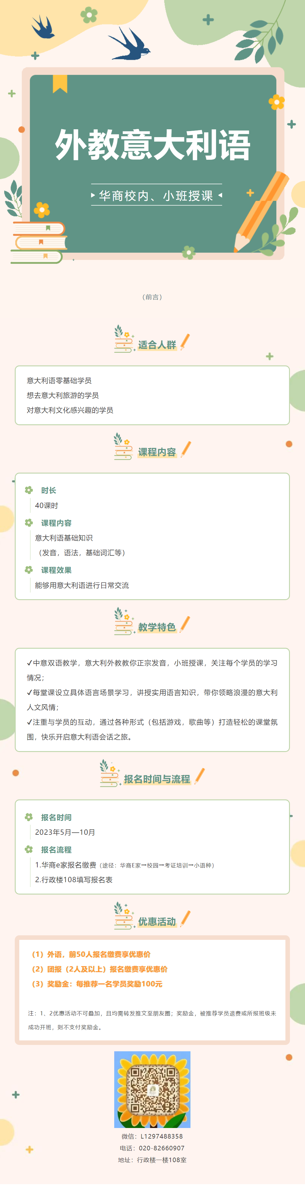 华商校内培训 | 外教意大利语班招生(2023年秋季)