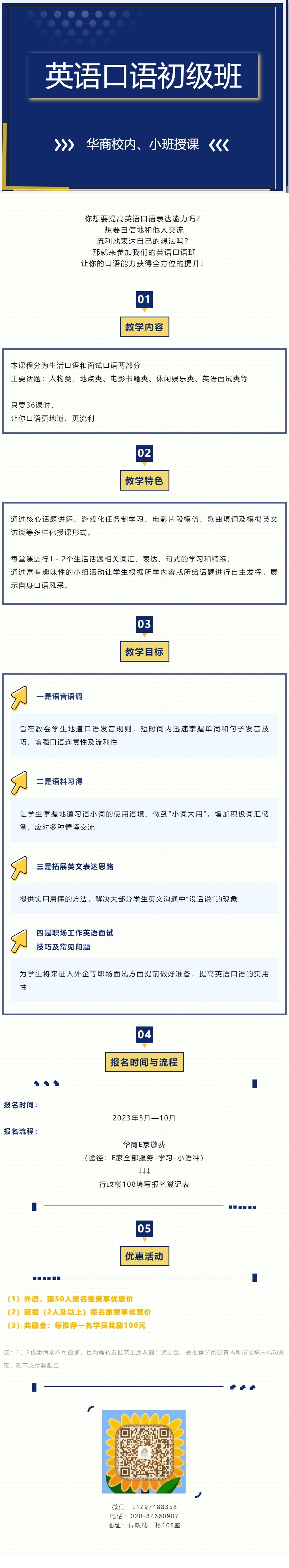 华商校内培训 | 英语口语初级班招生(2023年秋季)